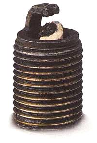 Kerzen mit Mehrfach-ElektrodenBei den Kerzen mit Mehrfach-Elektroden (Beispiel „Golden Lodge“) produzieren die Masse-Elektroden ihren Funken nicht gleichzeitig. Jeder Funke springt an dem Punkt zur Masse über, welcher gerade am leichtesten erreichbar ist. Somit wechselt der Funke automatisch zu einer anderen Elektrode, wenn eine verschmutzt oder beschädigt sein sollte, bis alle Masse-Elektroden ihre Lebensdauer erreicht haben. Sie haben eine Lebenserwartung, die drei oder vier mal höher ist, aber aber ihre Leistung ist etwas schwächer. Es gibt Motorenhersteller, welche für ihre Motoren Kerzen mit Mehrfach-Elektroden deshalb empfehlen, weil der Funke nicht immer genau an der gleichen Stelle über dem Kolben zündet. KerzenbilderDer Zustand des Mittelteils der Zündkerze kann als Hilfsmittel dienen, um den Zustand eines Motors und dessen Einstellung einzuschätzen. |